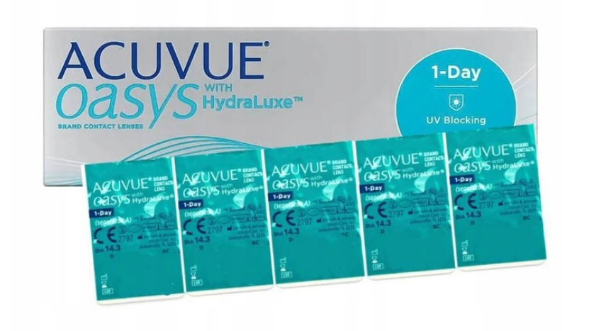 ACUVUE OASYS 1-Day with HydraLuxe Technology (technologia zintegrowanej łzy) to przełomowa, innowacyjna jednodniowa soczewka z rodziny Acuvue Oasys.